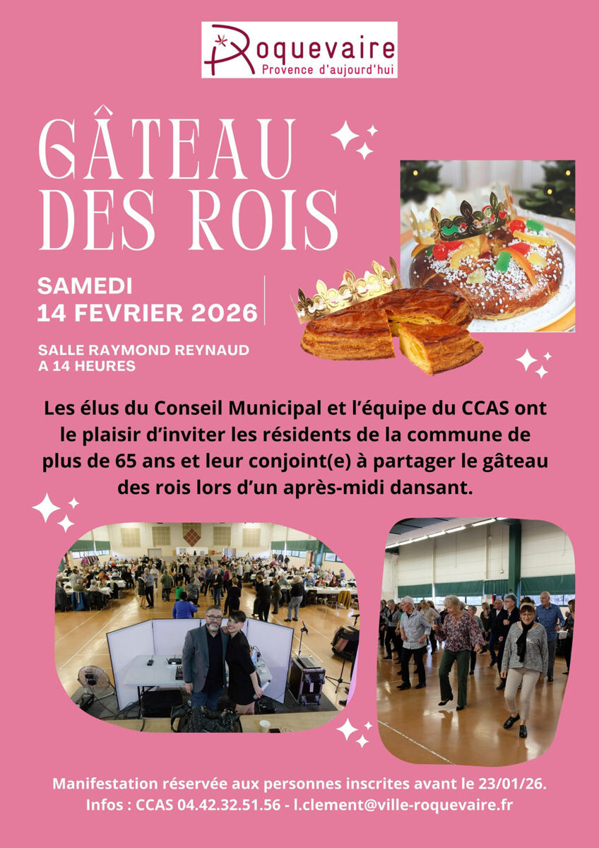 La Ville de Roquevaire invite les séniors au traditionnel Gâteau des Rois le samedi 14 février à partir de 14 heures dans la salle Raymond Reynaud.