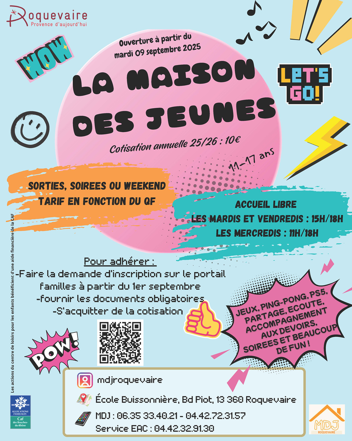 via le Portail Familles https://ville-de-roquevaire.portail-familles.app/home (Mon Planning → Maison des jeunes / périscolaire jeunes / accueil MDJ).