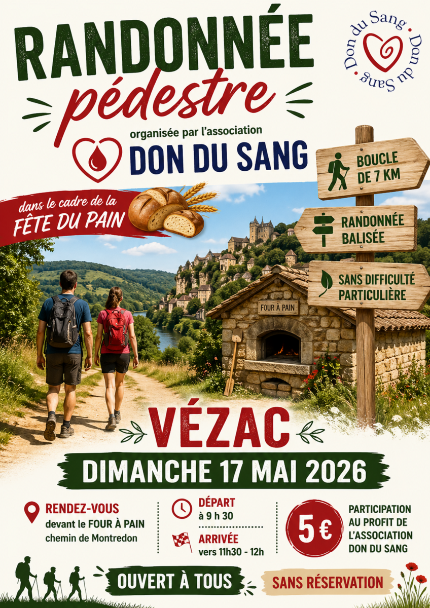 Randonnee Pedestre : Dimanche 17 Mai 2026 27/04/2026 Dans le cadre de la fête du pain. 😊 Renseignements au 06.87.53.78.29