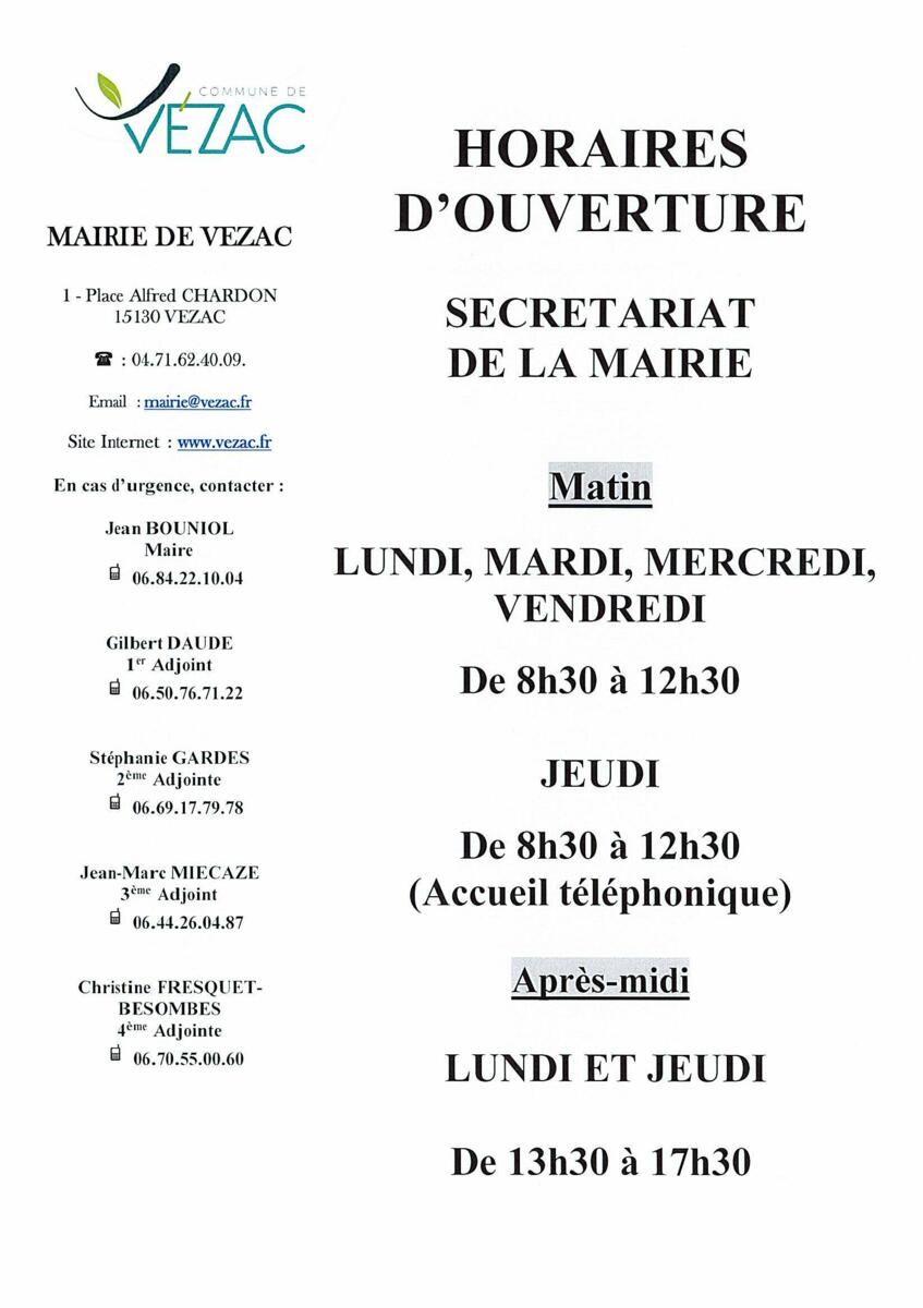 Secretariat De La Mairie : Changement Des Horaires D'accueil 24/04/2026 A compter du 02 mai 2026, les horaires d'accueil du secrétariat de la Mairie changent.