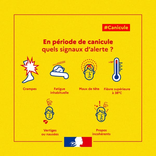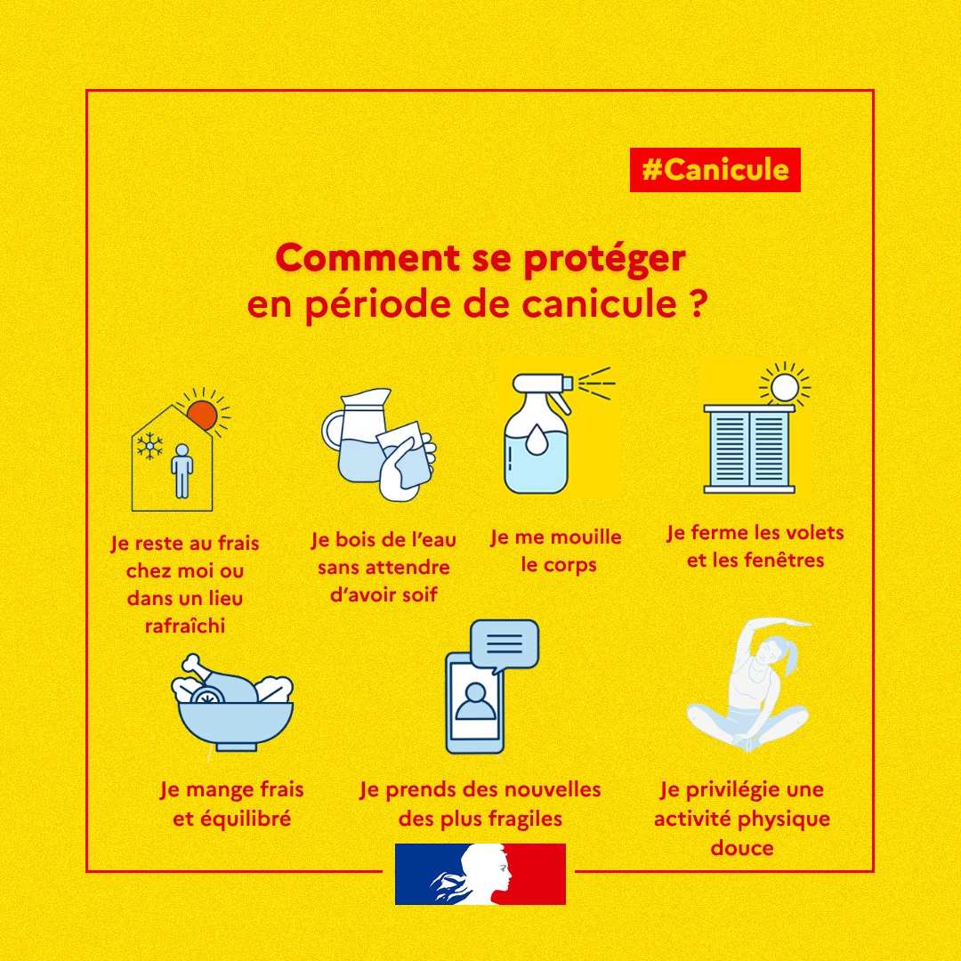 📢 𝗟𝗲𝘀 𝘁𝗲𝗺𝗽𝗲́𝗿𝗮𝘁𝘂𝗿𝗲𝘀 𝗿𝗲𝘀𝘁𝗲𝗻𝘁 𝗲́𝗹𝗲𝘃𝗲́𝗲𝘀 sur notre territoire. Une vigilance accrue est de mise durant ces épisodes de forte chaleur.