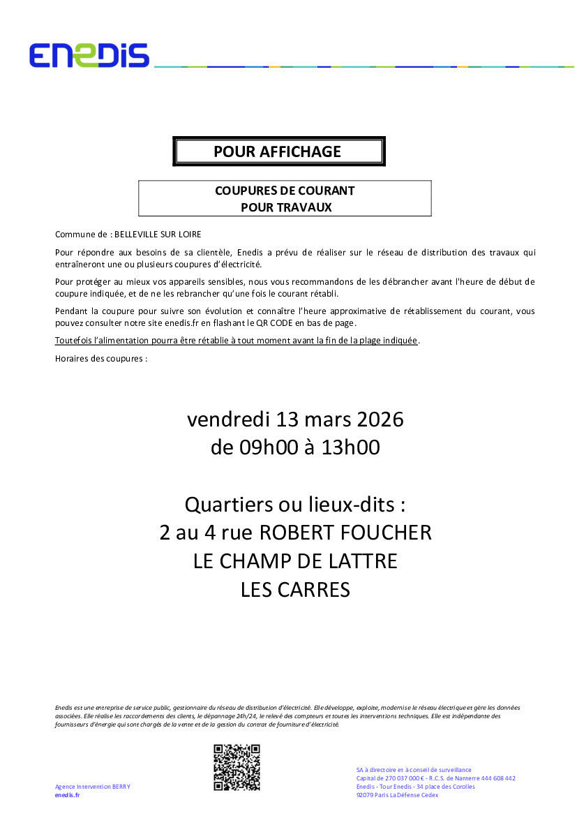 Enedis vous informe d'une coupure d'électricité le 13/03