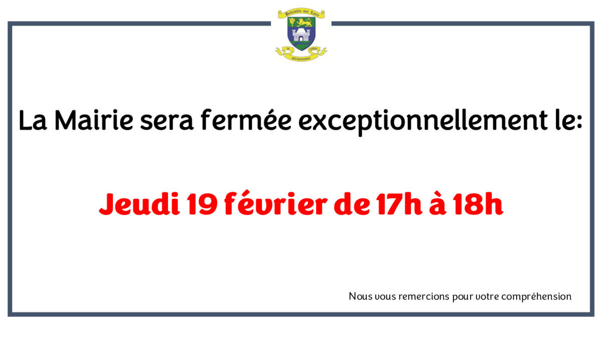 Your town hall / News / La Mairie sera fermée le 19 février de 17h à 18h