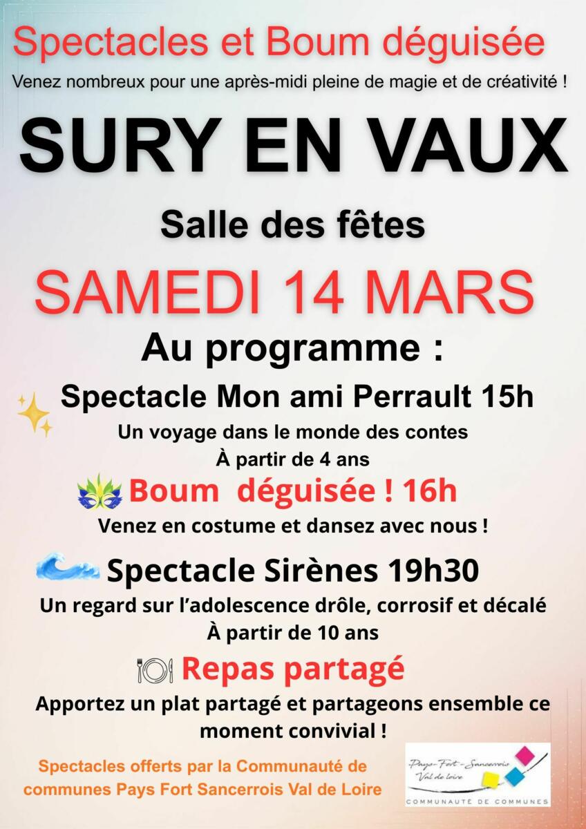 Spectacles "Sirène" 3/4/26 Ces animations sont organisées par la Communauté de Communes du Pays Fort Sancerrois Val de Loire.
