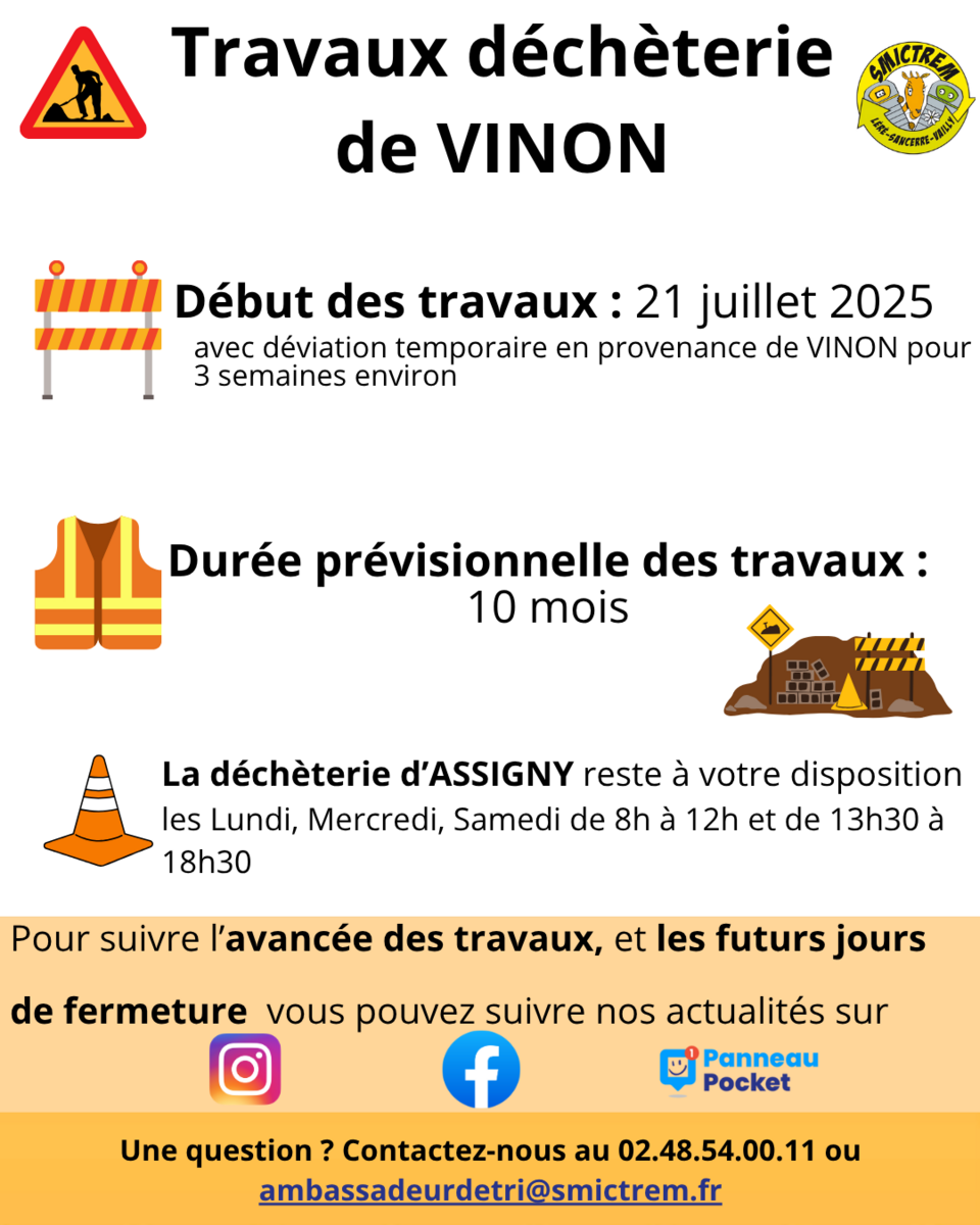Your town hall / News / 🚧👷Déchèterie de VINON : Travaux à partir du 21/07 👷🏼🚧
