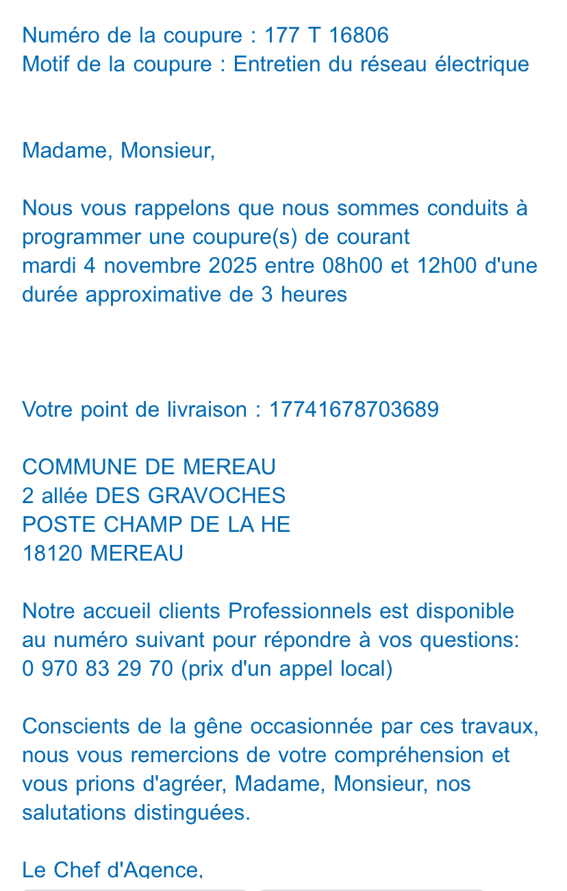 ENEDIS - COUPURE ÉLECTRICITÉ 04/11