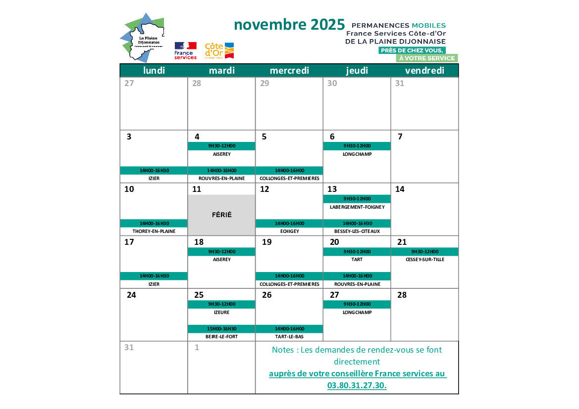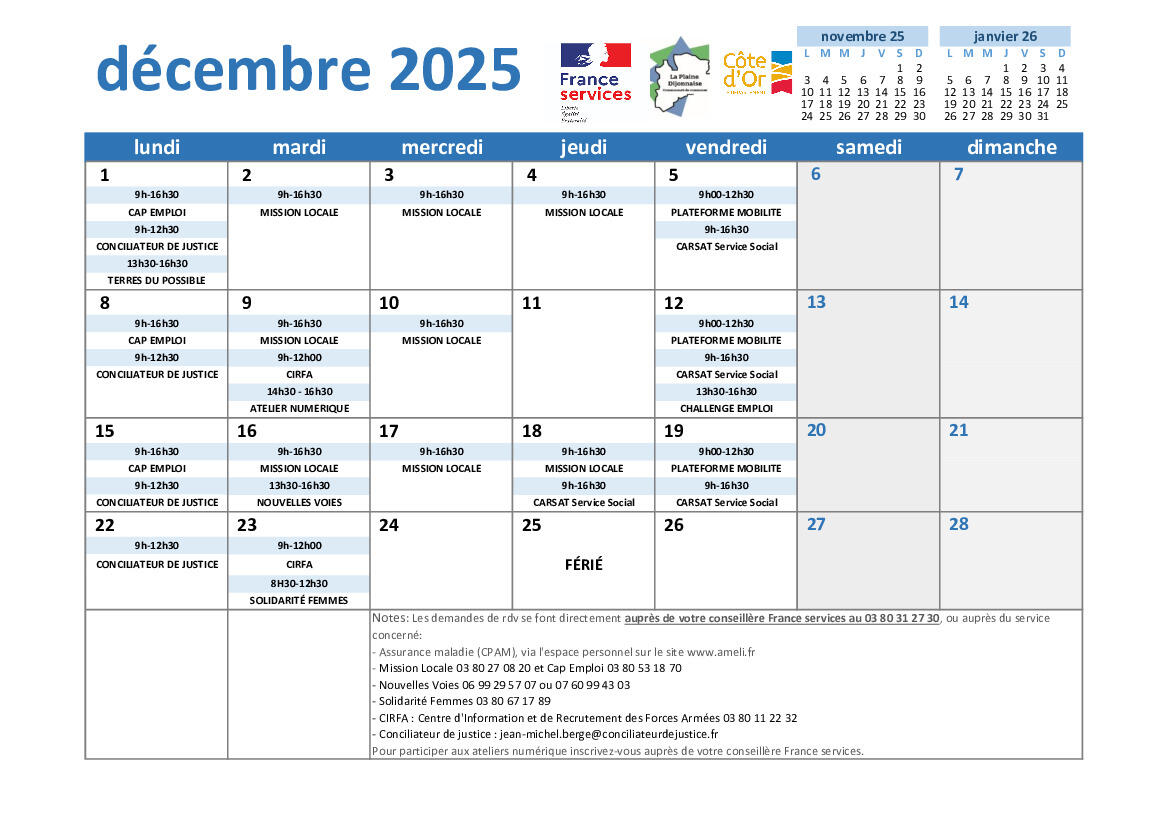PERMANENCES FRANCE SERVICES : NOVEMBRE 2025