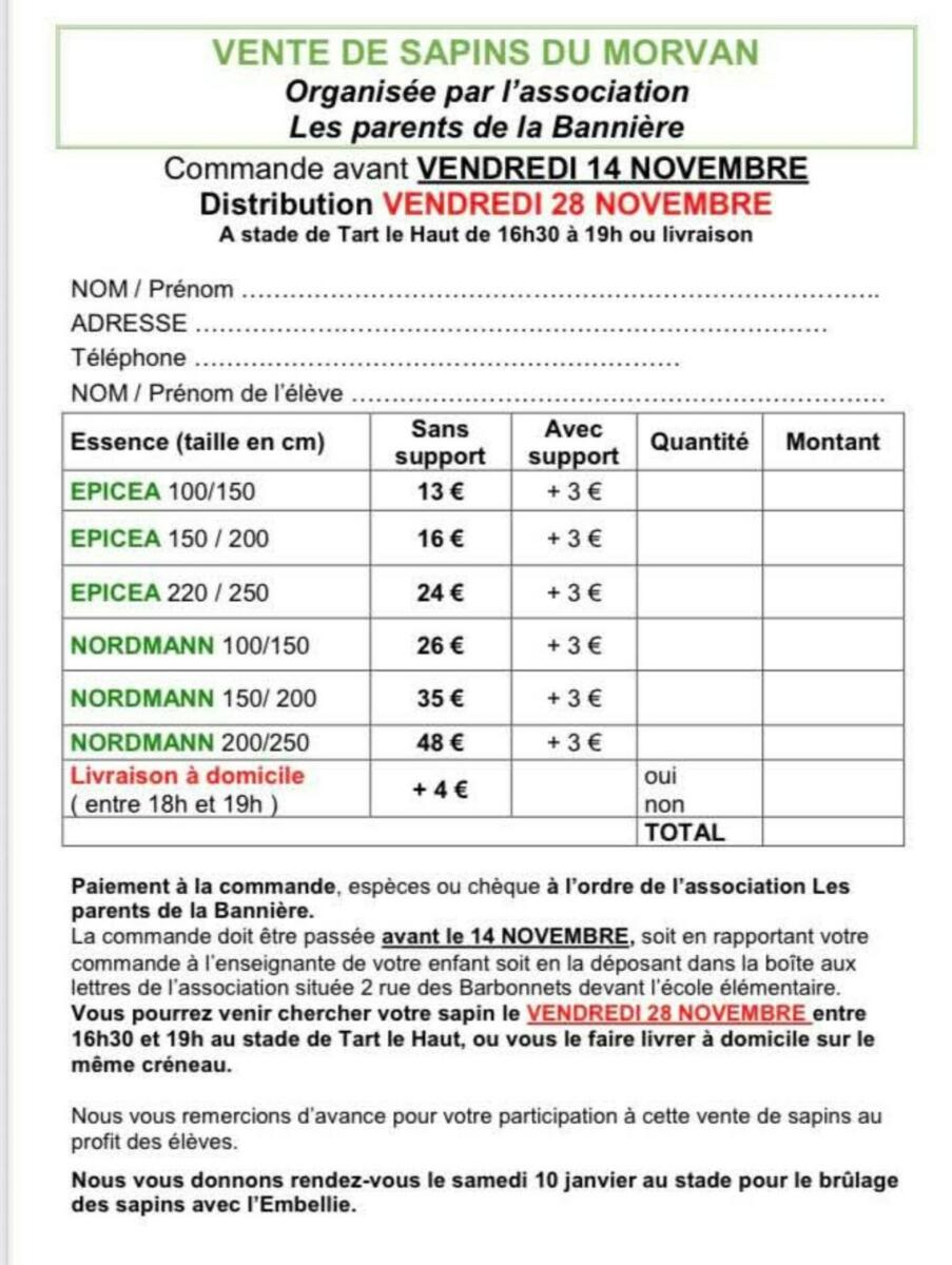 ASSOCIATION LA BANNIERE - VENTE DE SAPINS