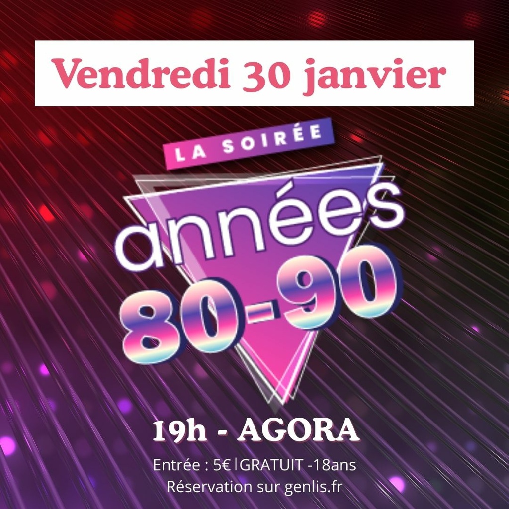 📅 VEN 30/01 - AGORA à 19H : Soirée années 80-90 - billetterie : https://www.genlis.fr/evenements/soiree-annees-80-90/