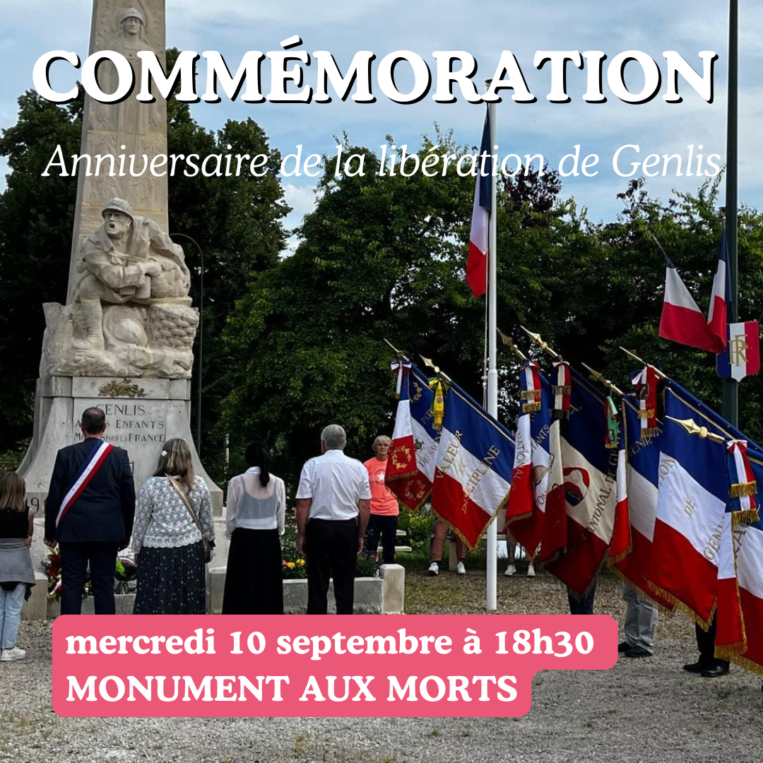 📅 MER 10/09 - MONUMENT AUX MORTS à 18h30 : Commémoration de l'anniversaire de la Libération de Genlis