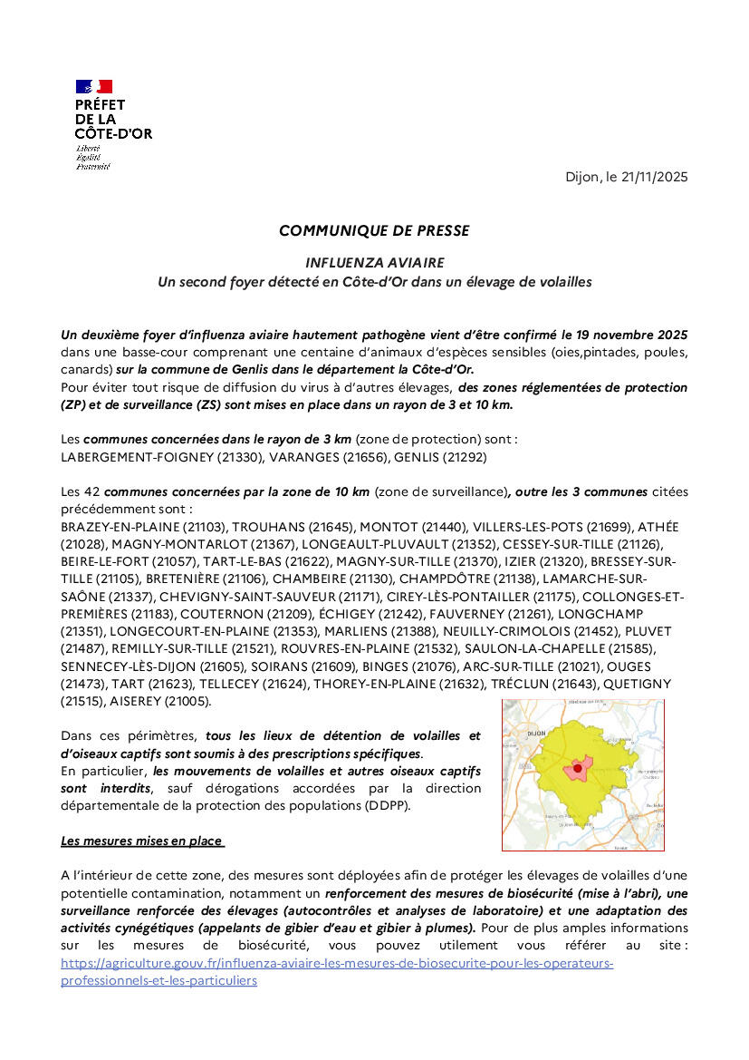 ⚠️ Cas de grippe aviaire/arrêté préfectoral zone réglementée