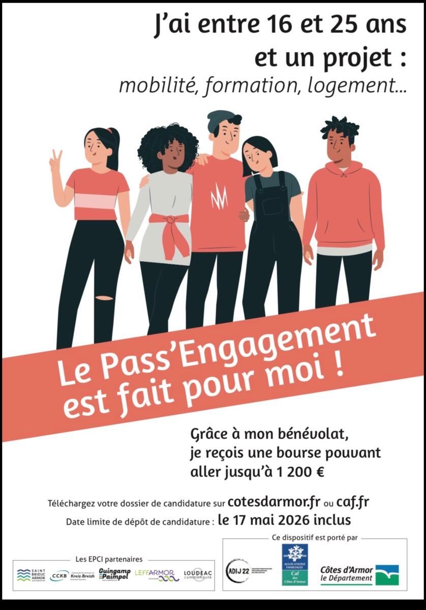 Dossier de candidature téléchargeable sur le site du Département première semaine de marshttps://cotesdarmor.fr/pass-engagement .