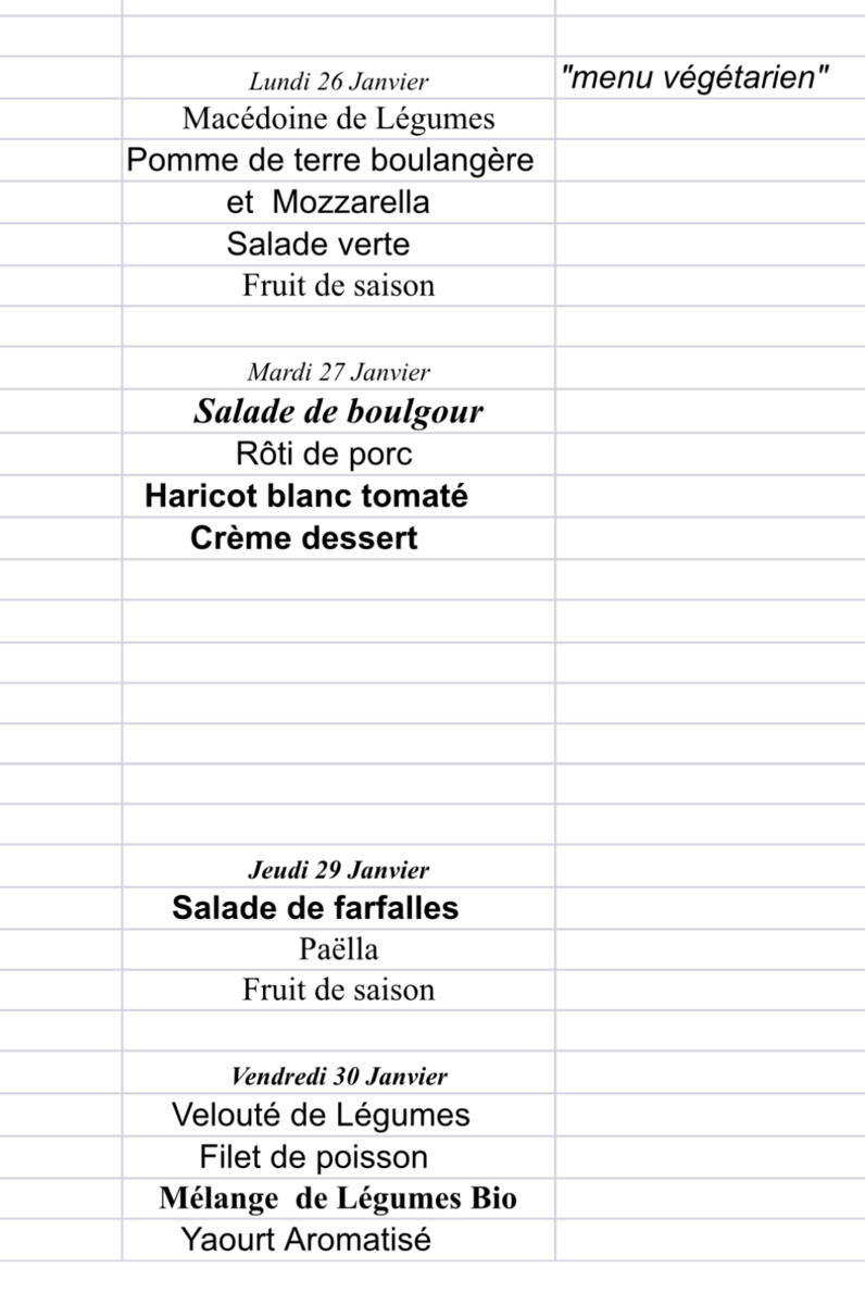 Menus cantine