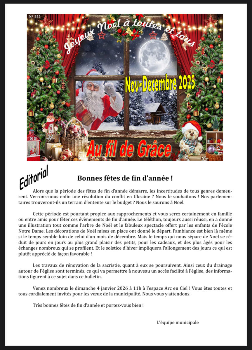 Voilà 30 ans que le bulletin municipal est offert aux Grâcieuses et Grâcieux. Pour mémoire, le n1 de 1995 a été inséré sur le site internet de la commune (rubrique « au fil de Grâce »)