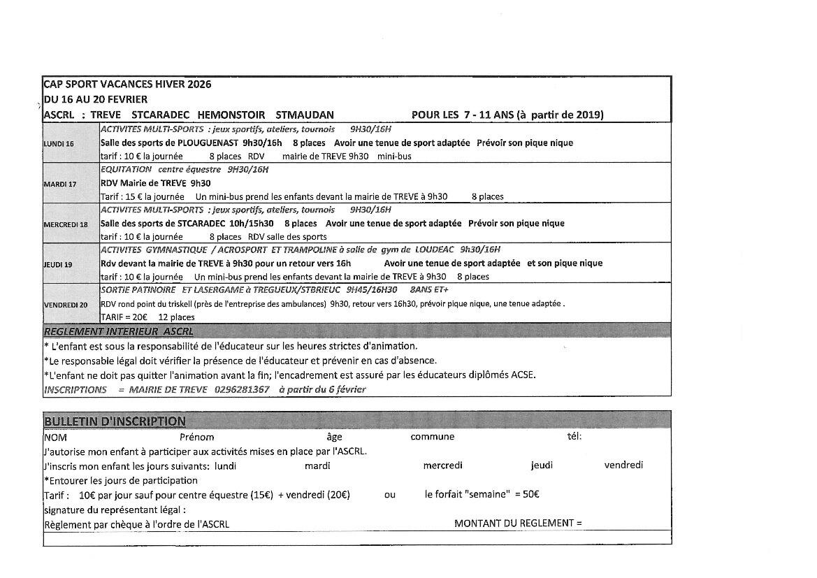 Retrouvez le programme et le bulletin d'inscription pour les activités Cap Sports proposées pendant les vacances d'hiver.