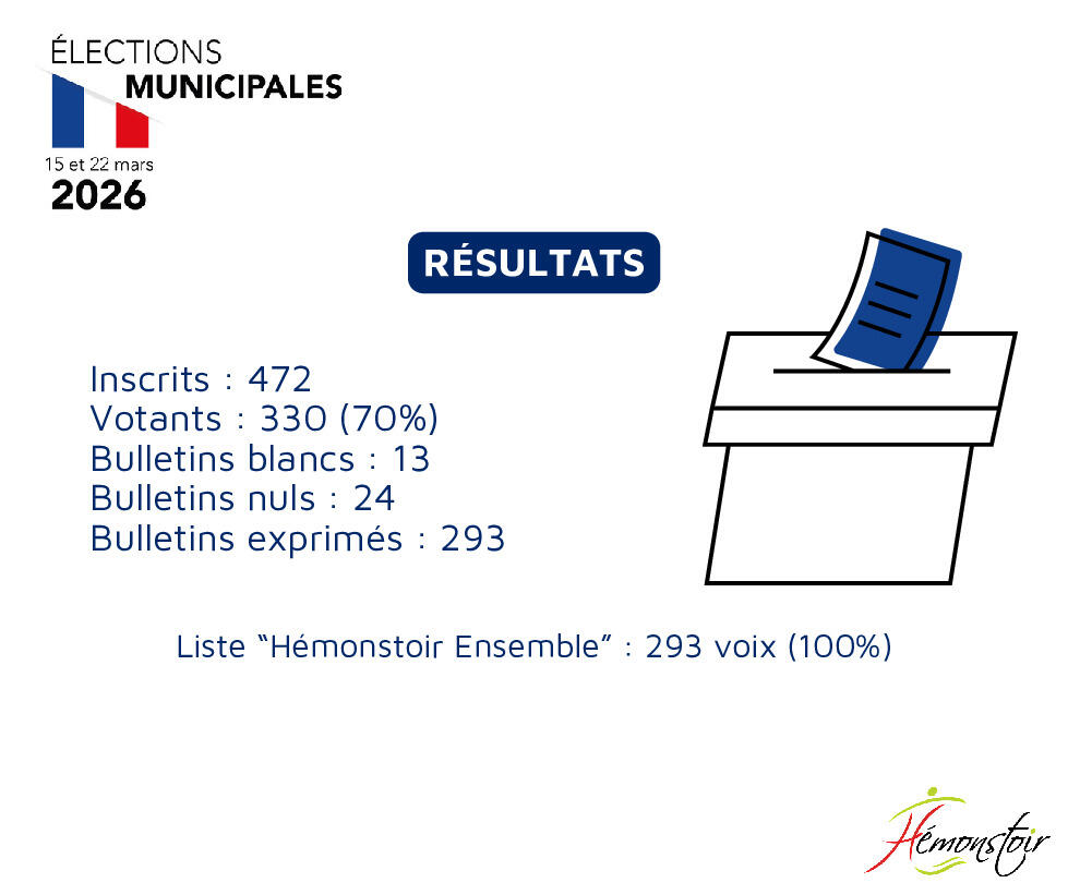 🗳️ELECTIONS MUNICIPALES - RÉSULTATS 3/16/26 Retrouvez les résultats des élections municipales pour la commune d'Hémonstoir.