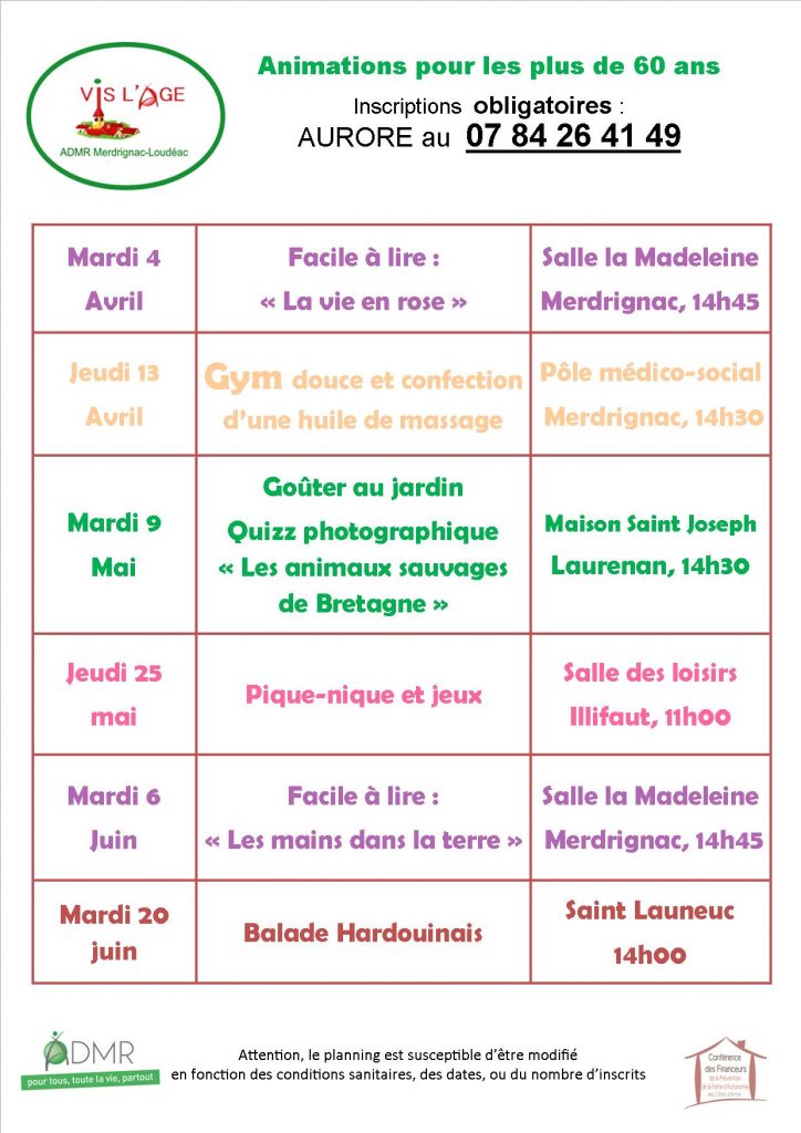 Les bénévoles du service « Vis l’âge » proposent de venir chercher les personnes intéressées, directement à leur domicile. La demande doit être faite auprès d’Aurore, la responsable de ce service. Vous pouvez la joindre au 07 84 26 41 49 ou par mail a.bertin@admr22.org