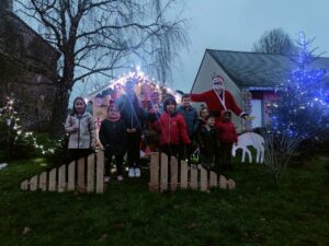 Ce soir, à l’initiative de Myriam, petit déplacement des enfants fréquentant la garderie le soir, pour admirer la cabane du Père Noël. Le petit groupe était encadré également de France et Valérie.