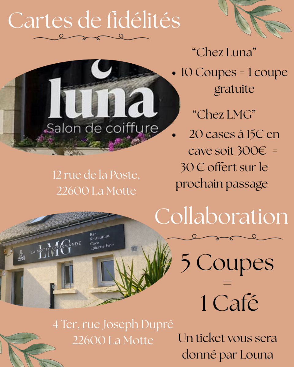 Après 5 coupes💇 "chez Luna", un café ☕ vous sera offert "chez LMG".