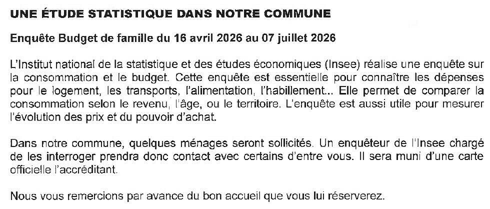 Your town hall / News / Enquête Budget de famille de l'INSEE