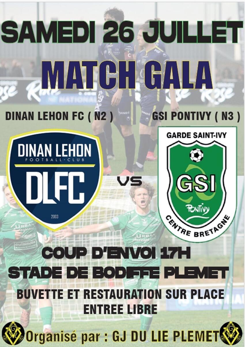 Le Groupement Jeunes du Lié organise samedi 26 juillet à 17 h un match de gala entre DINAN LEHON Football Club et la GSI (Garde Saint-Ivy) au stade de Bodiffé à Plémet.