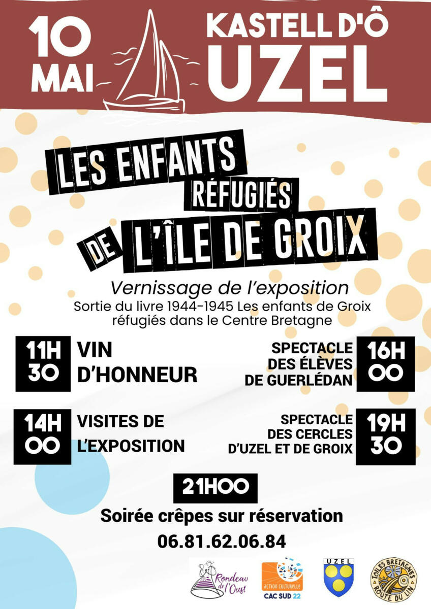 Toute la population est invitée au vernissage de l'exposition "Les enfants réfugiés de l'Île de Groix" le samedi 10 mai à 11h30 à la salle Kastel d'O à Uzel.
