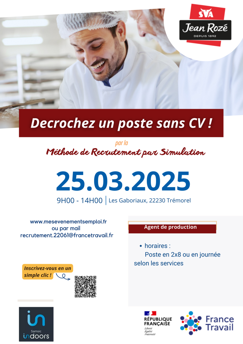 Alors n’hésitez pas à inscrire vos publics : par mail à recrutement.22061@francetravail.fr ou sur le site Mes Evènements Emploi :