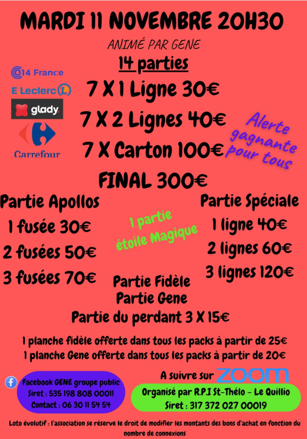 Your town hall / News / LOTO DE L'ECOLE EN LIGNE