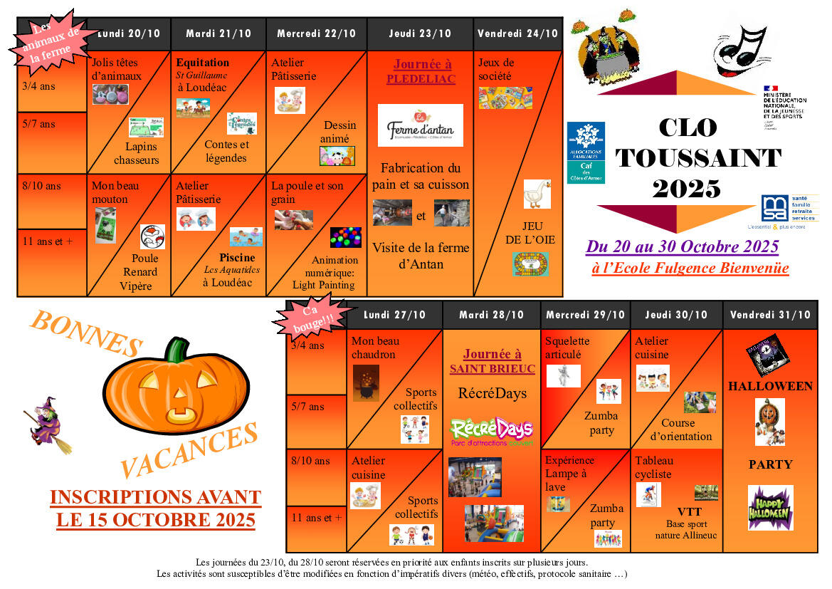 PROGRAMME VACANCES DE LA TOUSSAINT SIVU UZEL 10/2/25 Le SIVU Enfance Jeunesse d'Uzel vous propose son programme pour les vacances de la Toussaint