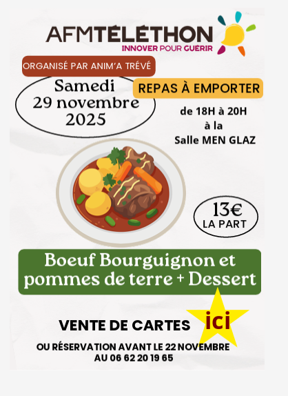 Anim'a Trévé: repas à emporter pour le téléthon le 29/11
