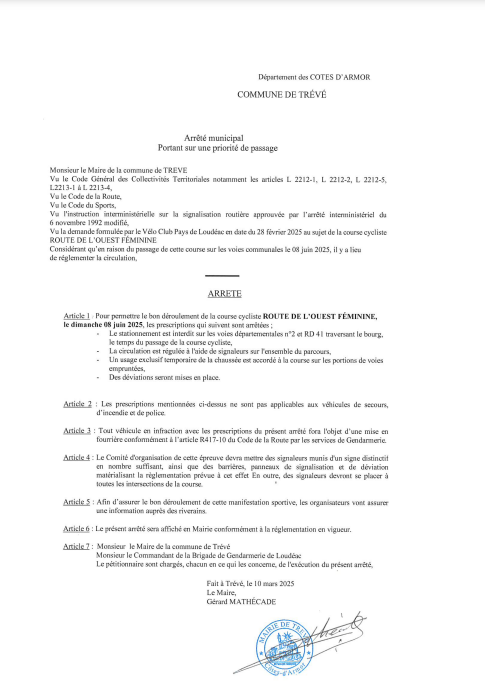 ARRETE COURSES CYCLISTES DU 08 JUIN
