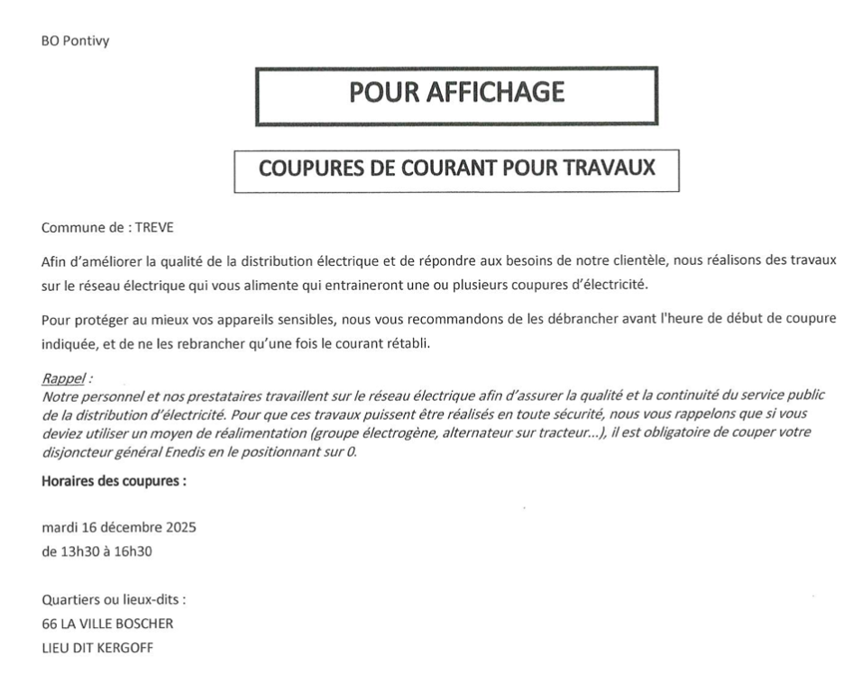 / Avis de coupures de courant le mardi 16 décembre
