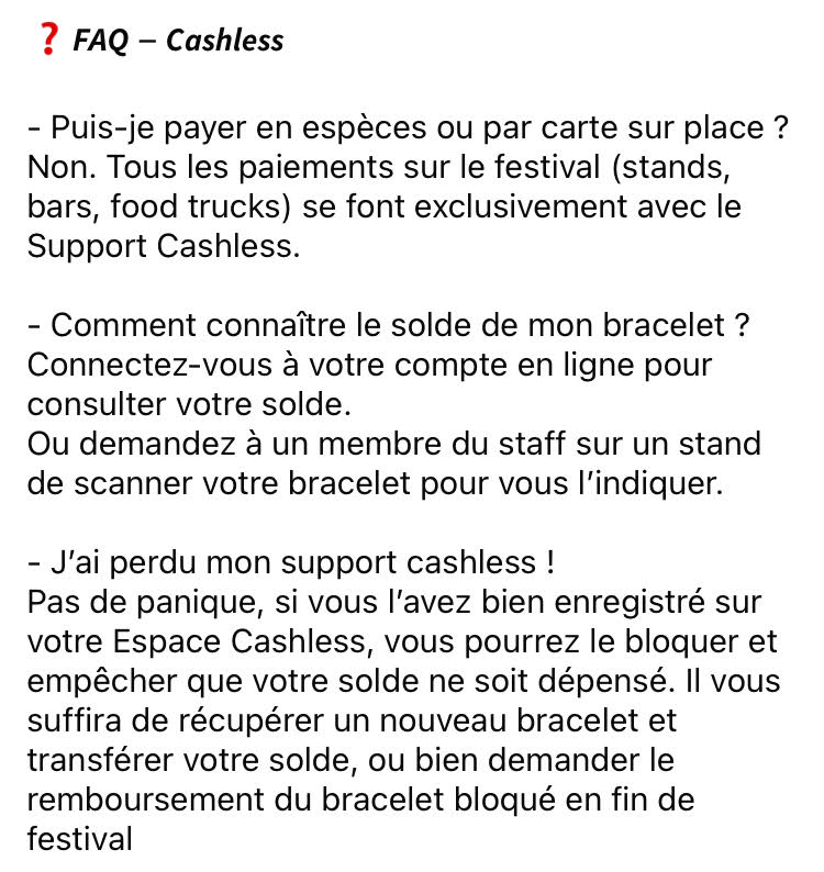Nouveauté cette année: le paiement sera 100% dématérialisé avec le bracelet CASHLESS.
