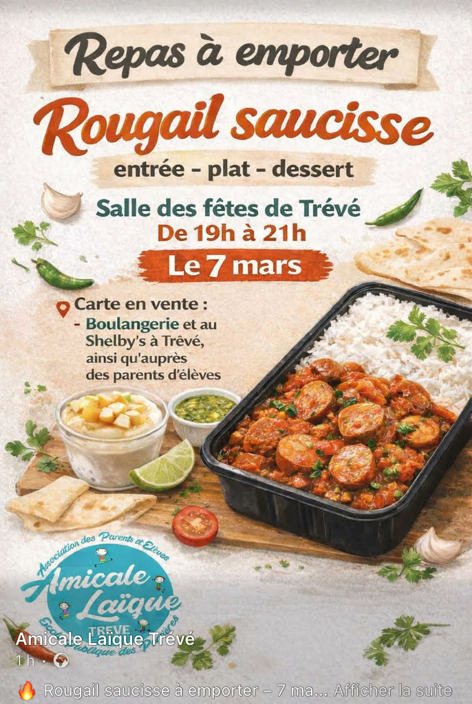 / Ecole des Perrières : Rougail saucisse le 07 mars à emporter
