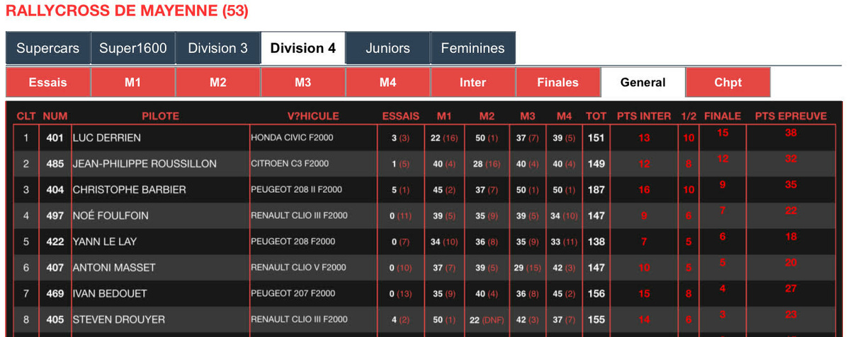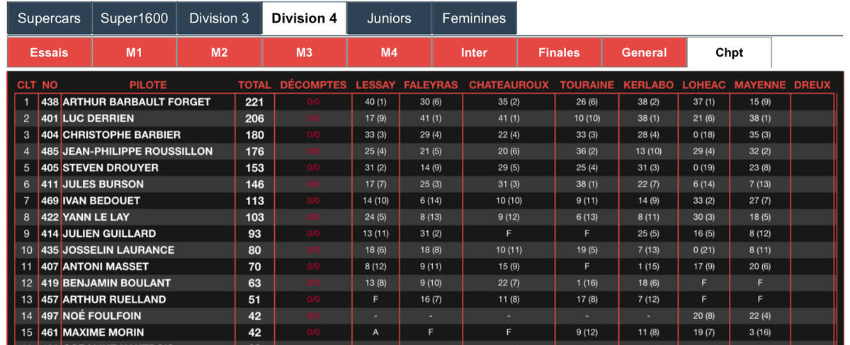 Il est donc 2ème au championnat à seulement 15 points du 1er Arthur Barbault Forget.