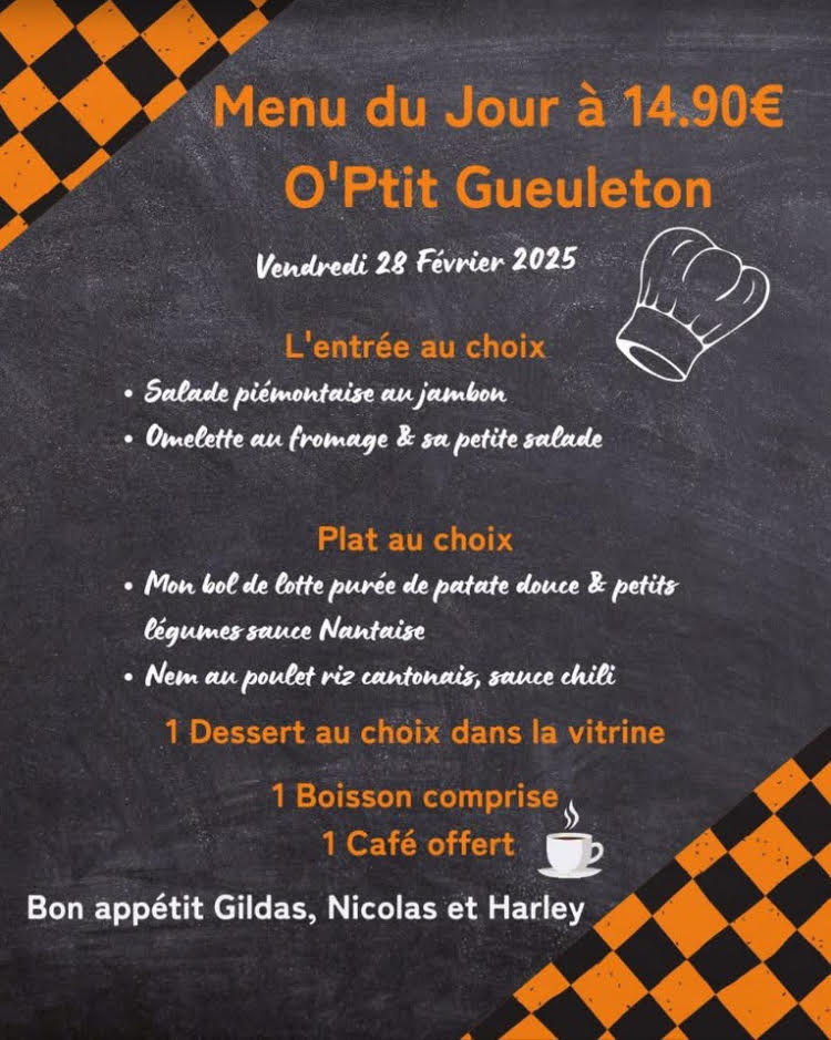 O'Ptit Gueuleton à Trévé : Menu du vendredi 28 février