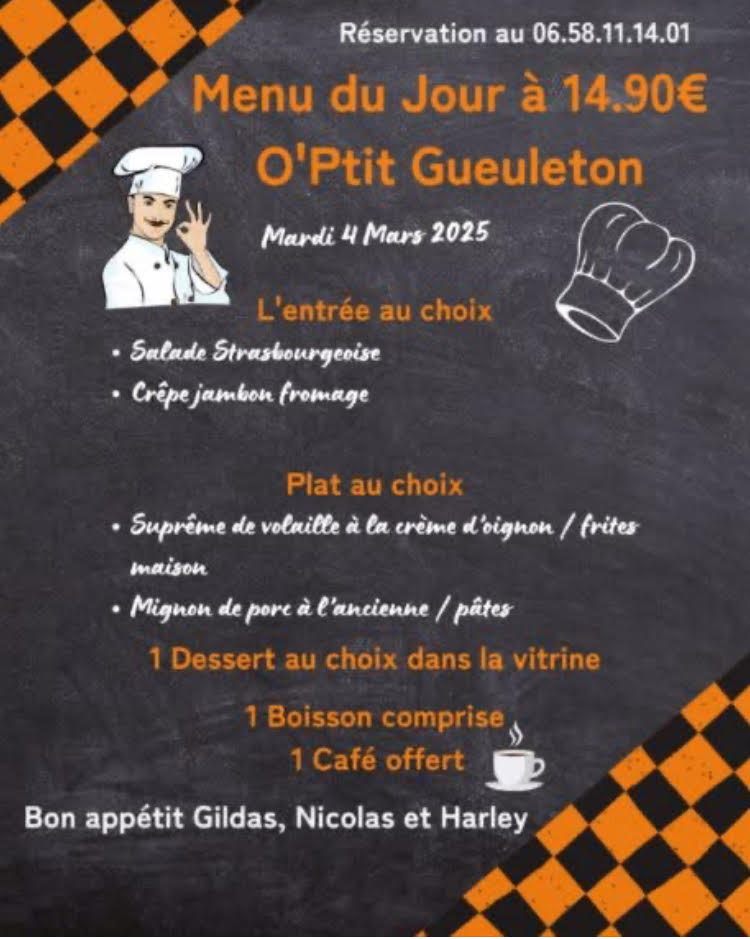 O'Ptit Gueuleton à Trévé : Menu du mardi 04 mars