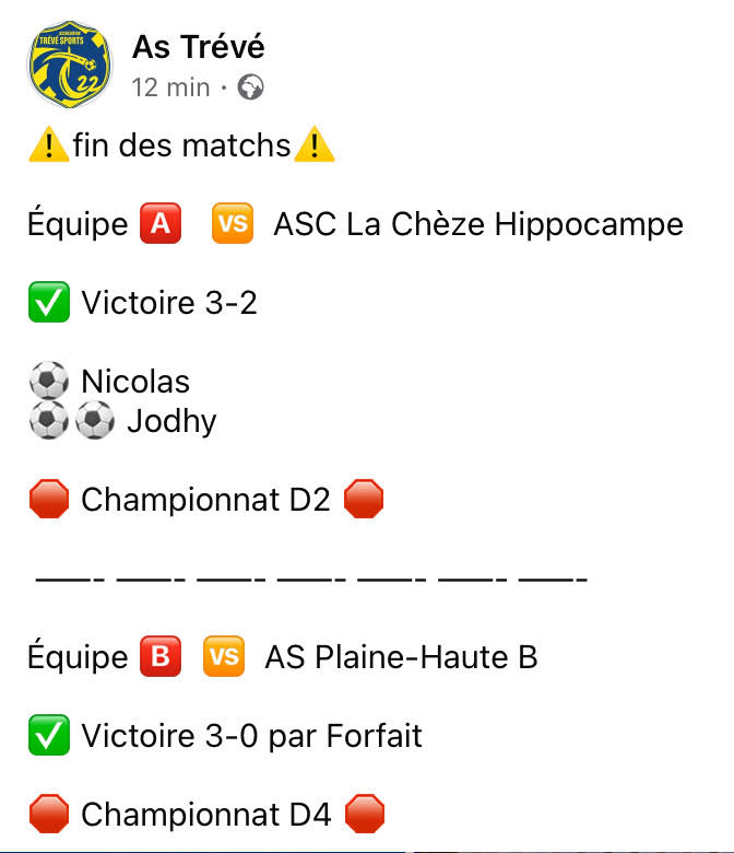 / Trévé Sport : les 2 équipes 1ères au classement général