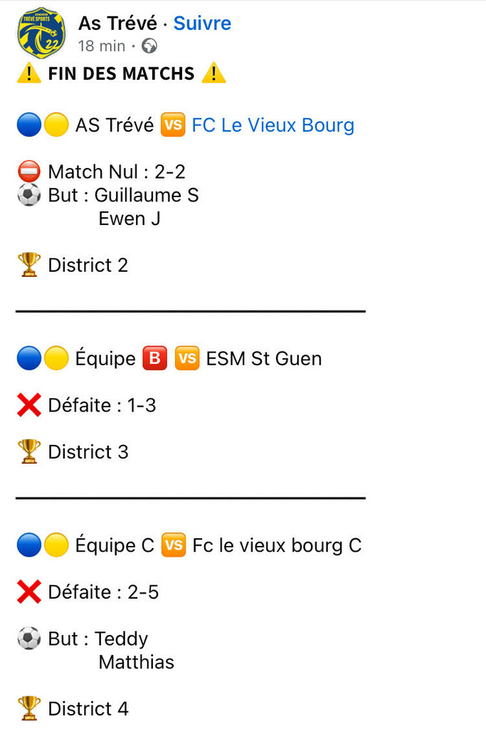 Trévé Sport : les résultats du week-end