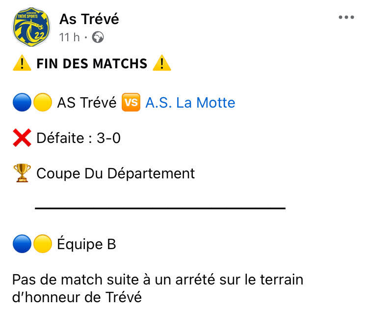 / Trévé Sports: résultats du week-end