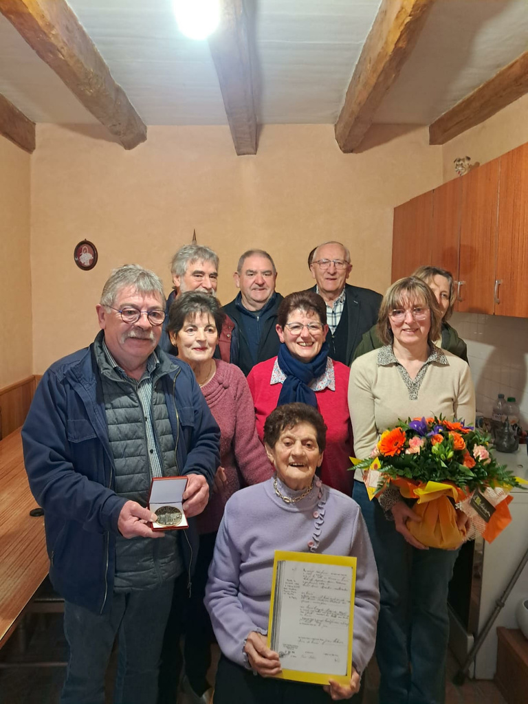 Gérard Mathécade lui a remis la médaille de la commune ainsi qu'une copie de son acte de naissance.