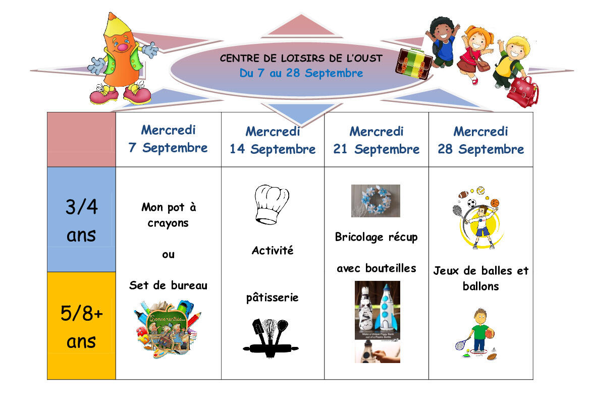 Activités CLO des mercredis du mois de septembre 8/23/22 Voici le programme pour le mois de septembre.