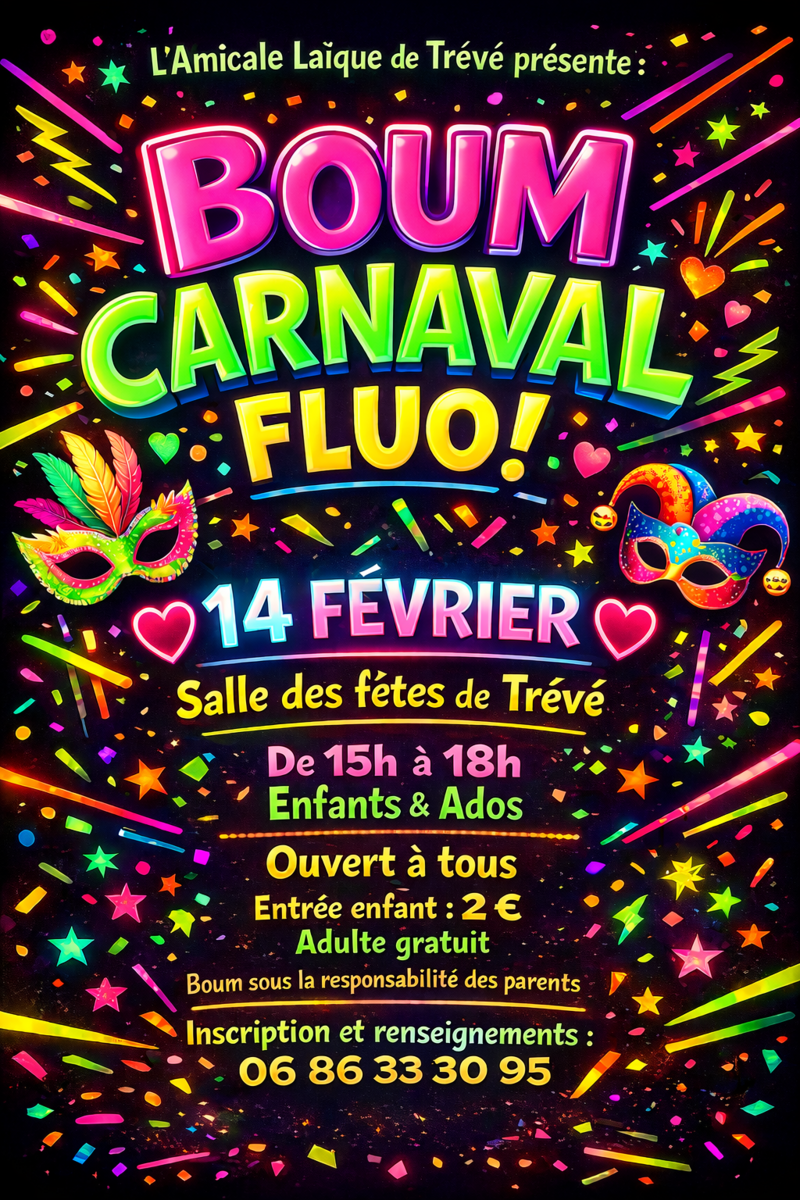 L’Amicale Laïque de Trévé organise une boum  pour enfants à la salle des fêtes de Trévé le 14 février , de 15 heures à 18 heures.
