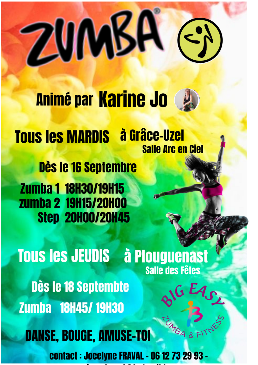 Venez à la rencontre de BIG EASY, une association qui propose des cours de Zumba / Step dans les communes figurant sur le flyer .