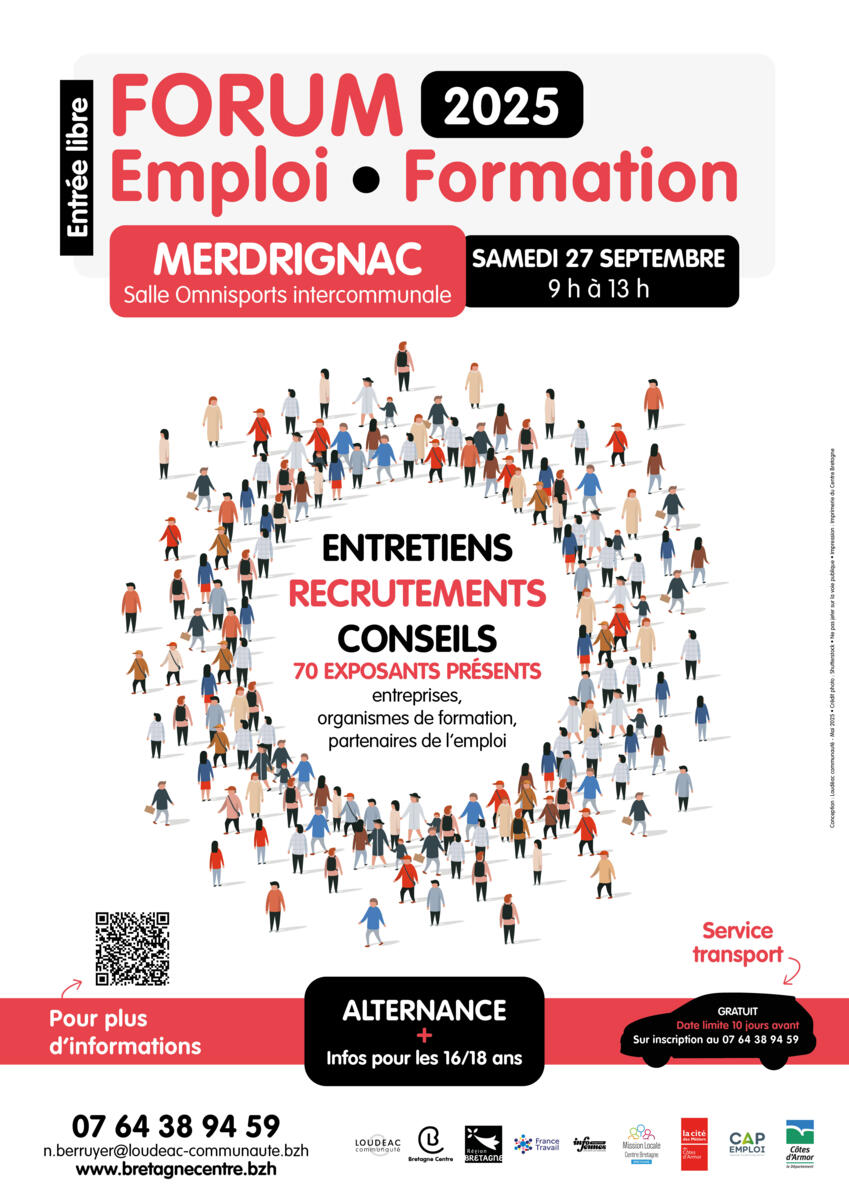 Nous avons le plaisir de vous informer que le prochain Forum Emploi Formation organisé par Loudéac communauté en partenariat avec France Travail, la Région Bretagne, le département des Côtes d’Armor, la Mission Locale, Cap Emploi et la Cité des Métiers 22 se déroulera le Samedi 27 septembre, de 9h à 13h, Salle omnisports intercommunale à MERDRIGNAC. Point Presse programmé à 11h00.