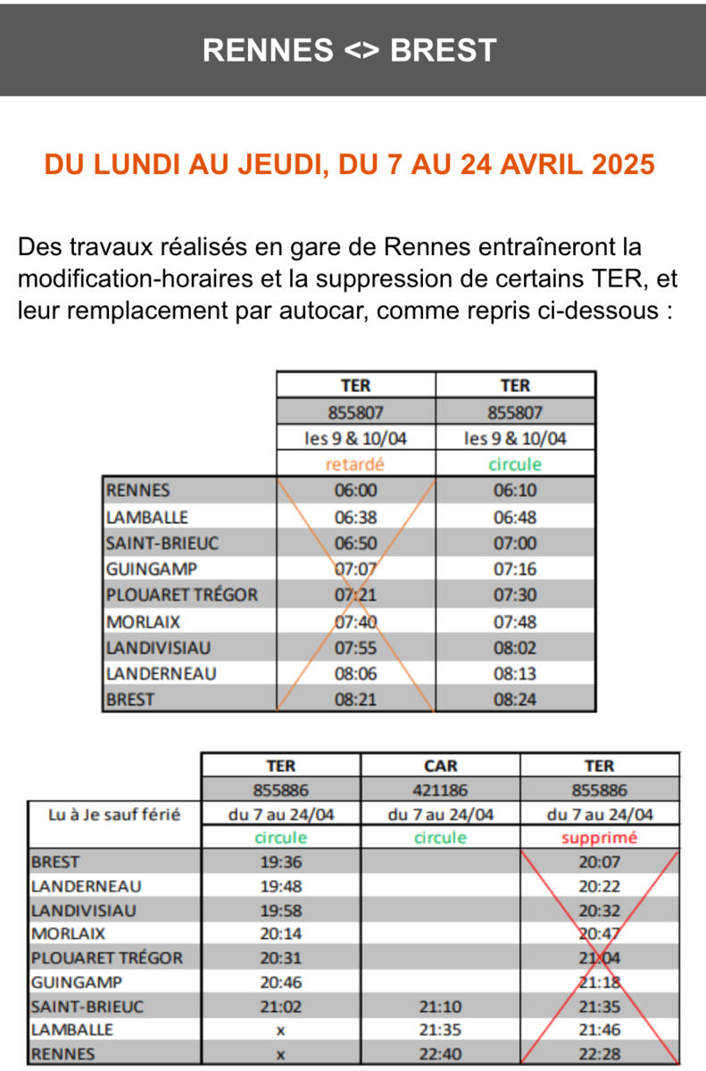 INFO TRAFIC TRAVAUX TER BREIZHGO