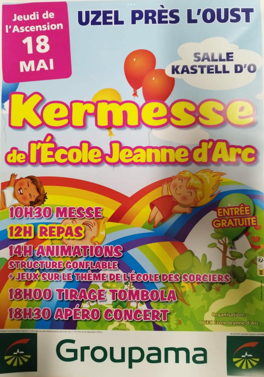 L'école Jeanne d'Arc organise sa traditionnelle kermesse le 18 Mai prochain à Kastel d'Ô. L'événement débutera par une cérémonie à 10h30 et s'en suivra d'un repas (entrée, dinde rôtie & sa garniture, fromage, dessert). Repas sur place ou à emporter (contenants fournis) au prix de 12€ (adulte) et 6€ (enfant).