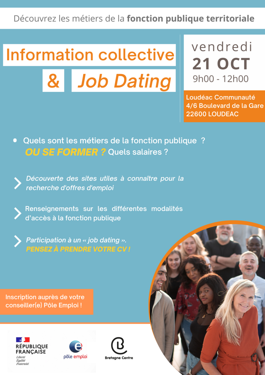 Le vendredi 21 octobre, Loudeac Communauté Bretagne Centre en partenariat avec le CDG 22 et Pôle Emploi organise une matinée de découverte des métiers de la fonction Publique Territoriale ainsi que les modalités d’accès.