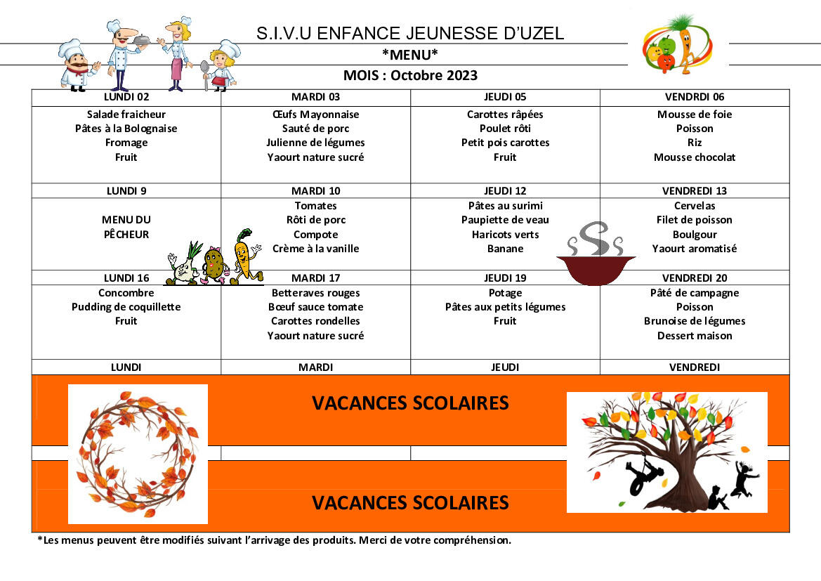 Your town hall / News / Menu de la cantine - OCTOBRE 2023