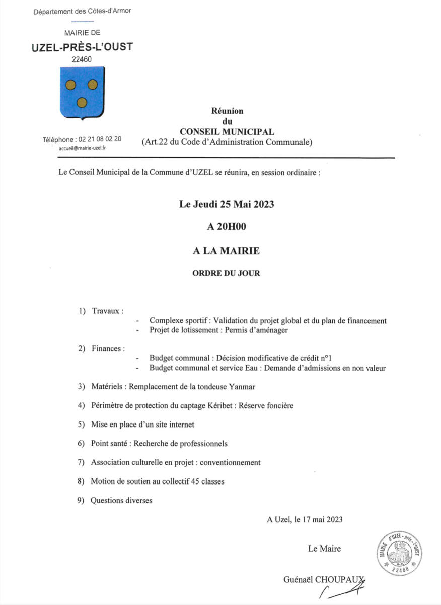 Your town hall / News / Réunion du Conseil Municipal le jeudi 25 mai